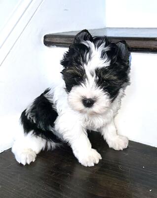 Meet Little Beau!!!! He is a very handsome and spunky CKC registered black & white parti male Yorkie...