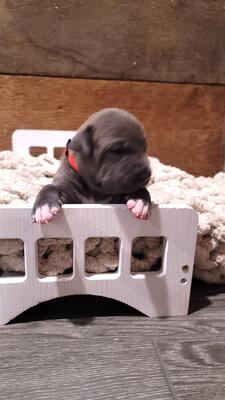 "RED" is a female XL bully. She has blue and merle brothers and sisters. Bullitt (dam) Is dual regis...