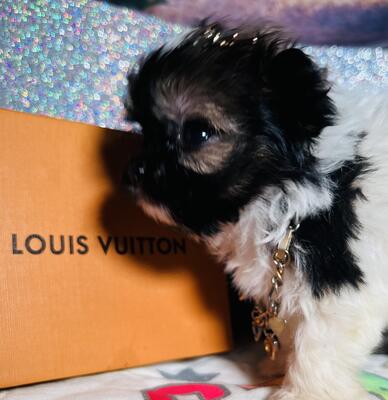 Black and white Pomapoo female . Hypoallergenic, non shedding , adventurous and definitely the les...