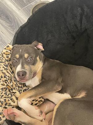4 month old female shes a blue tri got her 2 weeks ago from a. Friend of a friend she very timid a...