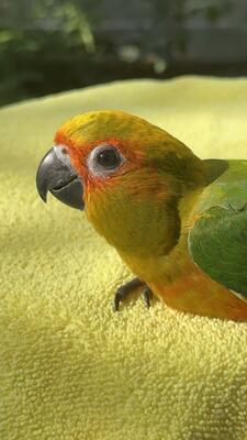 Baby Sun Conure For Sale in NYC - Two Months Old