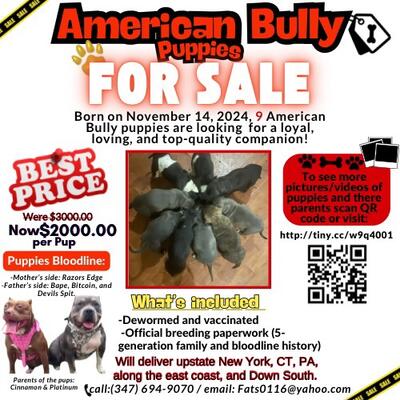 ZooYork Kennels presents a top-tier litter from elite bloodlines! These American Bully pups are dire...