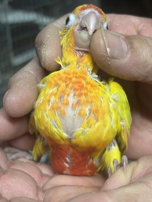 I have 3 dilute and two moon cheek yellow factor conures on three feedings a day. Currently 4 weeks ...