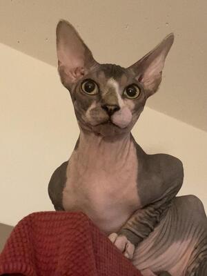 Gorgeous hairless bicolor young gentleman with Russian blood. 917-721-8888, Michael...
