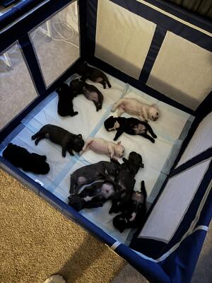 Dad: white fluffy Mom: fawn 3 females (2 blue & 1 fawn) Puppies born March 10, 2025 First 2...