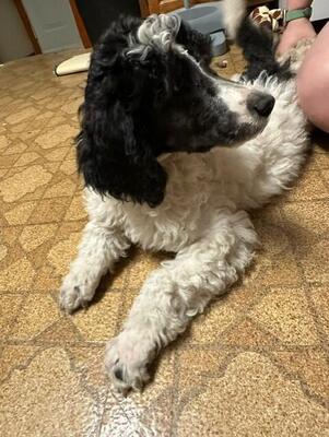 Standard Poodle Puppy: Brandy Large Black and White Parti Stunning colors