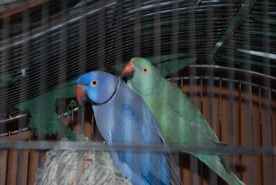 Pair of Indian Ringneck Parrots Pied Violet and Blue-green