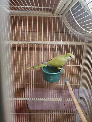 I have green opaline split to yellow quaker parrot It is 3 months It is Sami tame It eats on ...