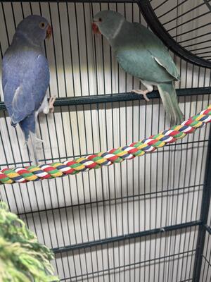Bonded Pair of Clear tail Indian Ringneck male and female Female is DF Violet Cleartail Male is ...