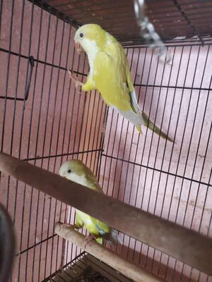 I have green opaline split to yellow quaker parrot It is 3 months It is Sami tame It eats on ...