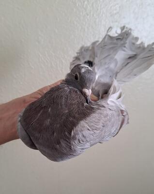He's a beautiful brown-banded fantail pigeon and is about 8 months old....