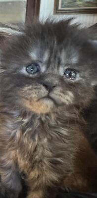 Maine Coon / Himalayan mix kitten born May 25, 2025. Mom is Himalayan and dad is Maine Coon. Kitte...