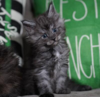 Meet our gorgeous black smoke male, Macho Man. He is a very social and sweet, playful boy. Raised an...