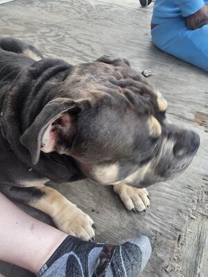 Blue tri standard American Bully female. She just turned 5 years old. Has had 3 litters of pups. ABK...