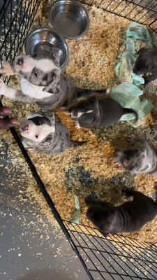 10 week old American Bully puppies available MWB Griselda x DRBK Eddie 2 champagne males, 3 Merles &...