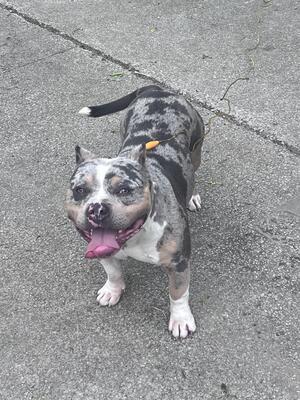 Free to good home .Merle American Bully male available Cincinnati Ohio 2 years old crate train house...