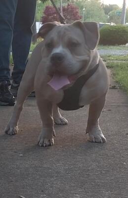 Friendly,playful,female American bully blue/fawn brindle will be two years on 6/13 Abkc paperwork,mo...