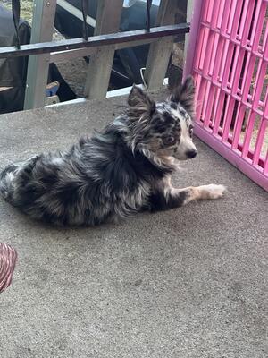 Long haired double coat beautiful but he weighs 18 pounds to big for traditional means size female a...