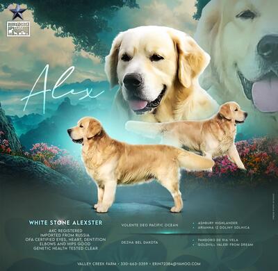 "White Stone Alexster" Is a Gorgeous AKC Registered Golden Retriever male, he was Imported from Russ...