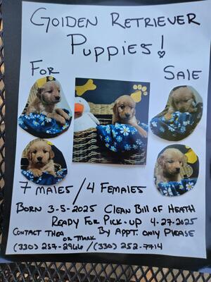 These cute golden retrievers will be ready for their forever home on June 11th. The parents are both...