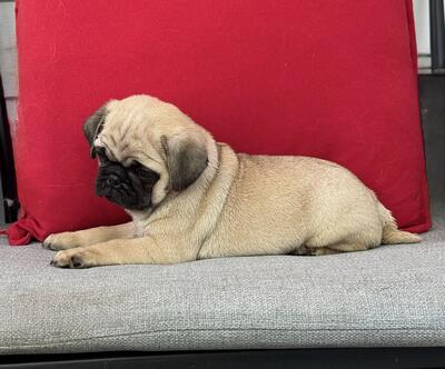 MAC adorable fawn male pug puppy