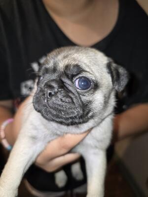 4 yr old Male Merle pug. Sweet boy that feeds off of one on one attention and “his person”. Du...