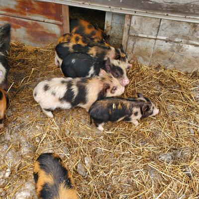 The cutest most colorful kunekune pigs ready to go now!! These flashy lil pigs will have your hearts...