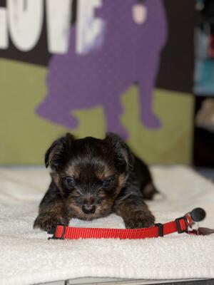 Yorkie puppies 1 female(yellow collar) & 2 males left out of a litter of 5 puppies born December 1st...