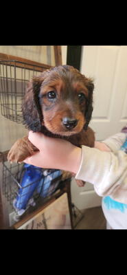 I have a male long haired dachshund must find forever home, he’s 5 or 6 years old, I am moving can...