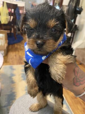 Male yorkie born 04/2025 Very sweet and playful , great with kids and other dogs. Trained to puppy...