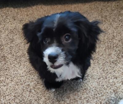 We have one beautiful little bouncing fluffy ball of love and fur. His coloring is black with white ...
