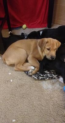 Born November 3. Dad is a catahoula leopard dog. Mom is a husky German shepherd. Blond pup is a fem...