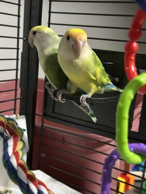 Pair of lovebird. Darker yellow is male Around 2 to 3 year old Not handtame Pick up in Whiteha...