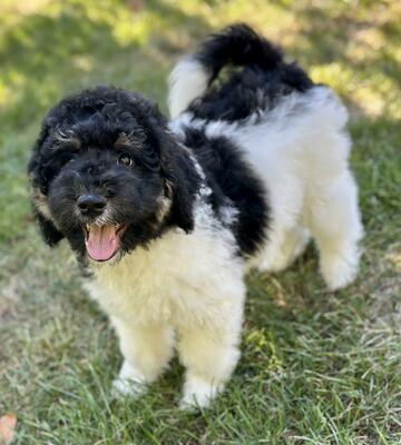 Meet our beautiful mini/medium size goldendoodle puppies. Black and white, Tricolor and Phantom. 12 ...