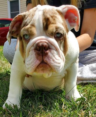 AKC registered English bulldog Up to date on shots and deworming Chocolate tri male born 5/21/24...