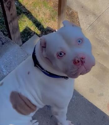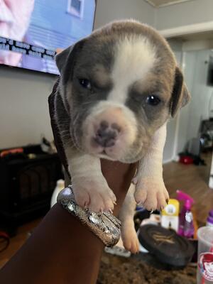 Female merle pocket bully she has two different colored eyes. Abkc registered with very sweet person...