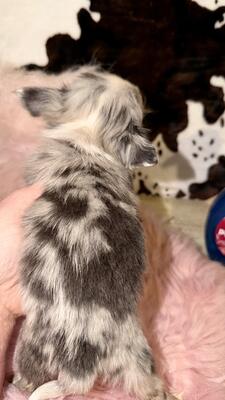 Extremely tiny applehead blue eyed Merle female🩷