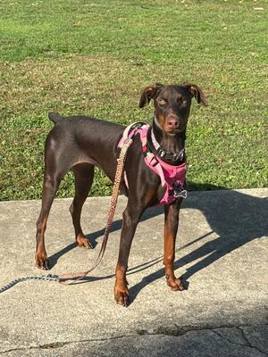 1.5 year old spayed red female Doberman