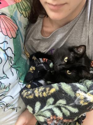 Little over a year old Male Black Green eyes Very friendly Talkative Playful Not fixed ...