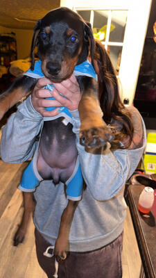 Male Doberman, 11 months old, un-altered, Great with kids and dogs/cats. $500 or best offer....