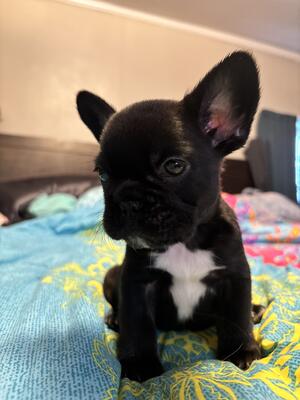 Meet this gorgeous 4-week-old black French Bulldog female! She’s playful, cuddly, and full of pers...