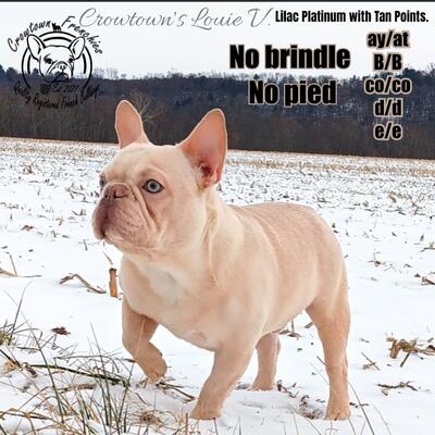 Crowtown Frenchies LLC This is our stud, Louie. He is a lilac/tan platinum. He is health clear w...