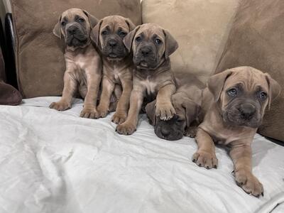 Both males. Chubbs is the boxer, moose is the corso. They are neutered. Housebroken and crate traine...