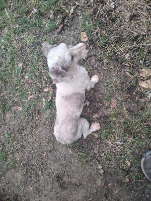 4-year-old poodle female up to date with shots get along with other dogs and children and weighs ab...