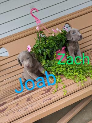 We have four labs, 2 yelllow and 2 gray, both have blue eyes. AKC registered, vet cleared, dewormed ...