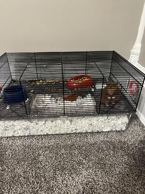 hamster cage and supplies.