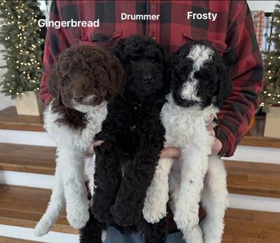 Meet Frosty. A striking black and white parti AKC Standard Poodle male with bold markings. Our pup...