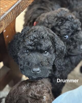 Meet Drummer. A solid black AKC Standard Poodle male with a classic, full, soft coat. Beautiful bre...