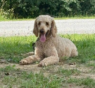 3 year old intact female Standard Poodle. About 50lbs, standard size. Very friendly girl, hasn't me...