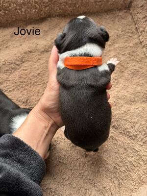 Jovie is a sweet little black and white Boston Terrier. She was born right before Christmas 12/13/20...